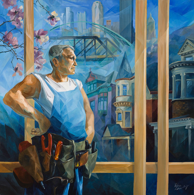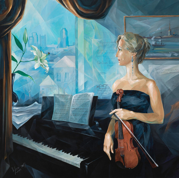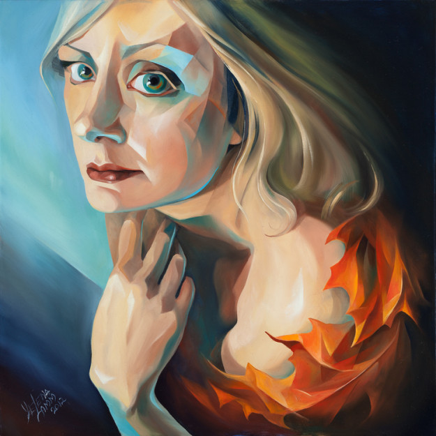 My subjects are traditional in their nature, but I prefer my realism with a little twist. I like mixing the soft curves of the human form with architecturally structured or geometric patterns, combining elements of cubism with organic shapes. In my portraits, I like conveying the person’s story through the use of background details.